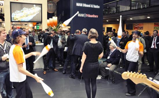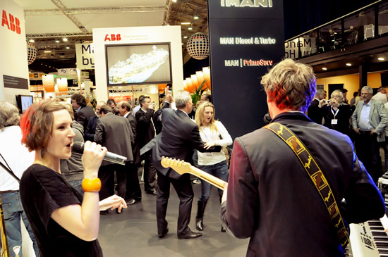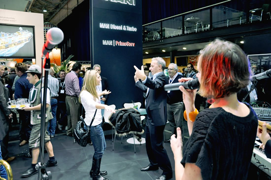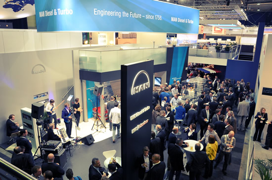 Am Messestand von MAN bei der Europort 2011 im „Ahoy“, Rotterdam.